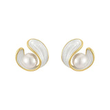 Elegant Gold Earrings Featuring White Opal and Pearls